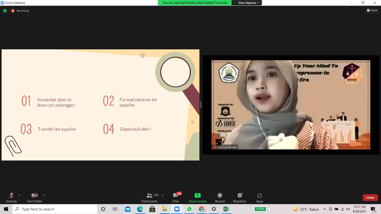 “Banyak kendala dari sistem ataupun dari sdmnya sendiri”, ungkap Dinda Karunia Lestari, selaku ketua pelaksana Webinar Kewirausahaan 2021. “Belum 100%, dikarenakan berbagai kendala yang tidak bisa dikontrol secara langsung oleh kami”, lanjut Dinda.